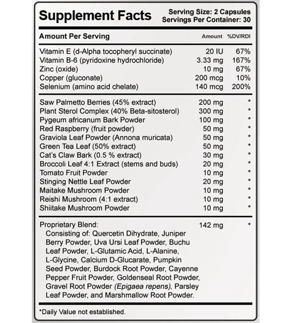 - Contains widely used prostate-support ingredients